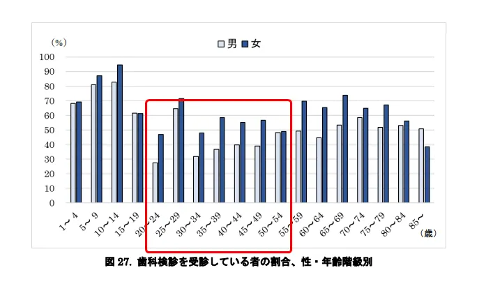 歯科検診を受ける人は働き盛りの大人が一番少ない