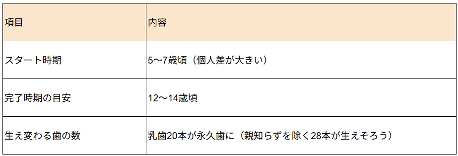 1. 歯の生え変わりの基本的な流れ